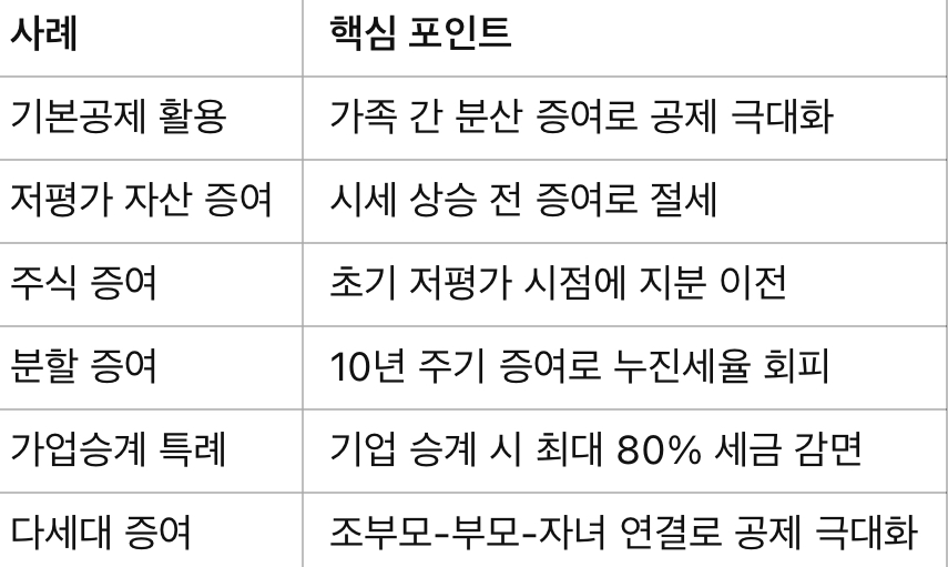 • 세대별 공제 한도와 낮은 세율 구간을 적극 활용하는 전략